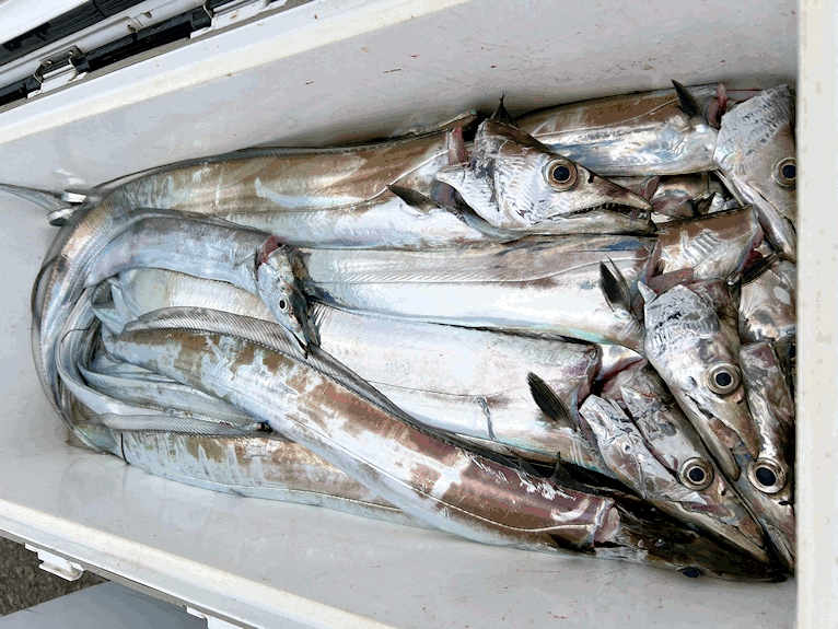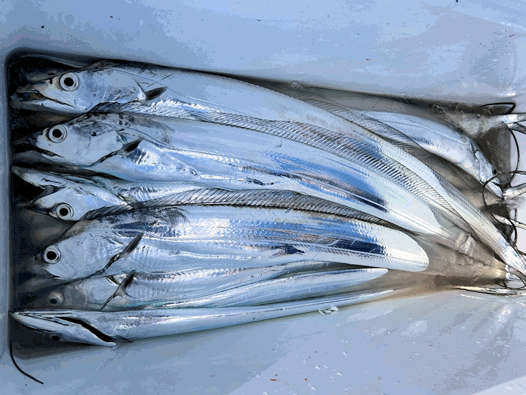 2025年9月7日 本日は太刀魚にて出船しました 前半合ってるお客様はポツポツ、後半反応固まり合ってるお客様は入れ食い〜ポツポツ・餌釣り 15本・ジギング 31本〜10本・F3.5〜F2.0 後サイズが復活すればよいのだけど |