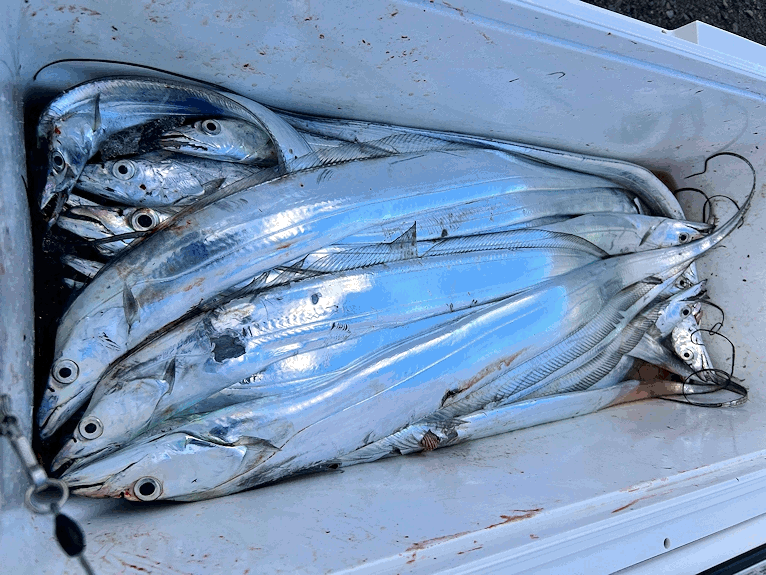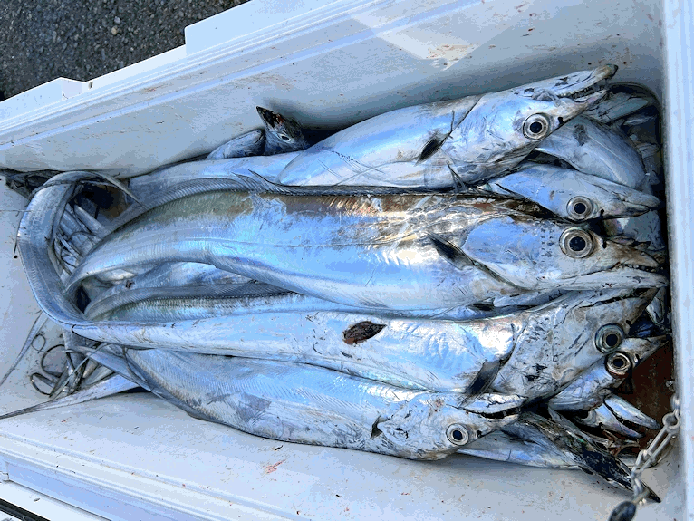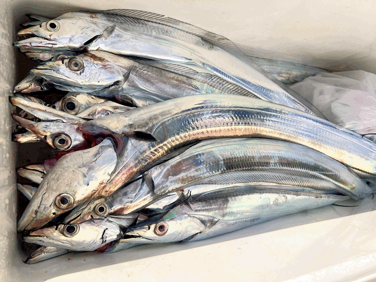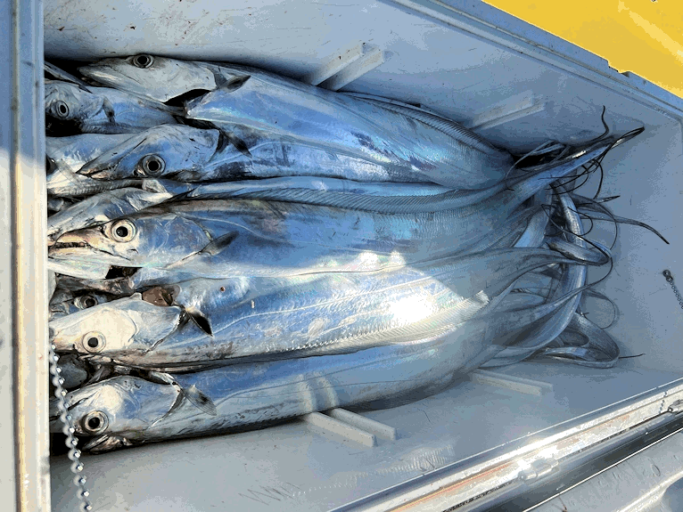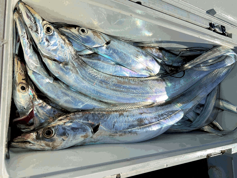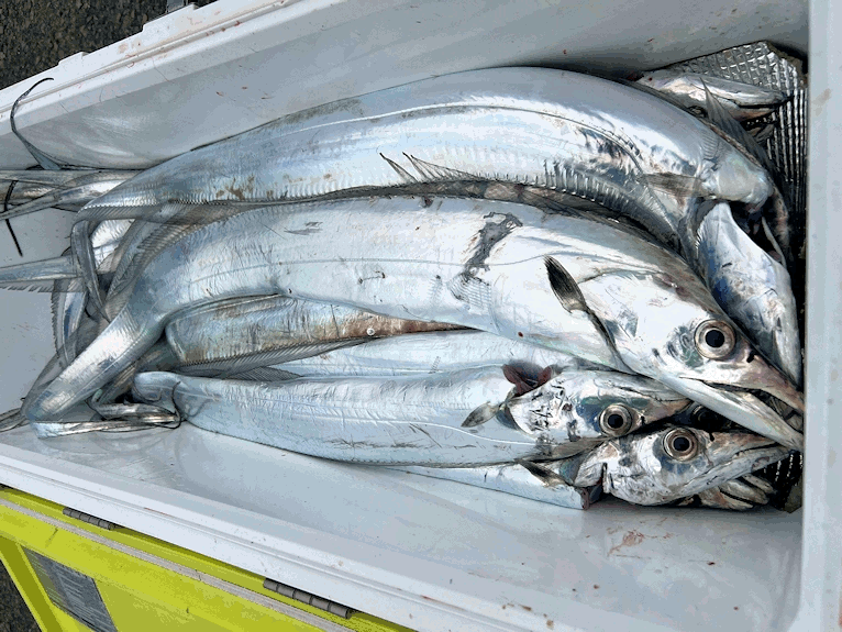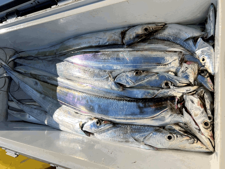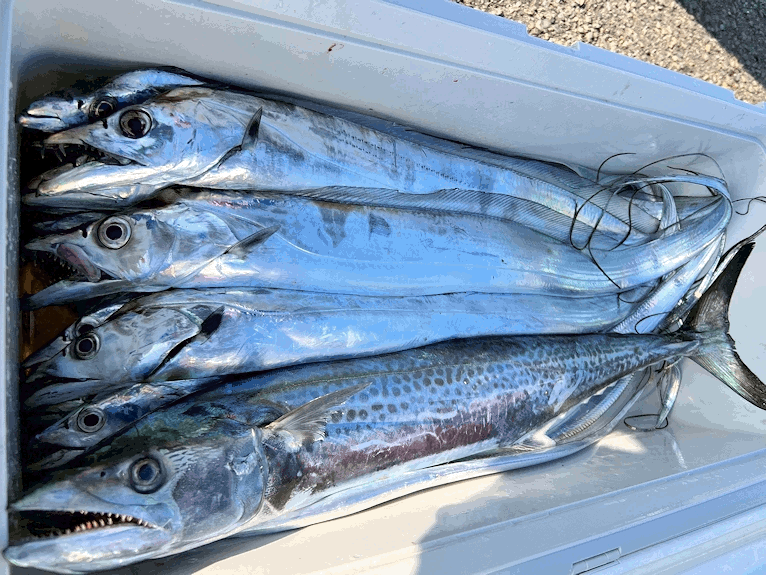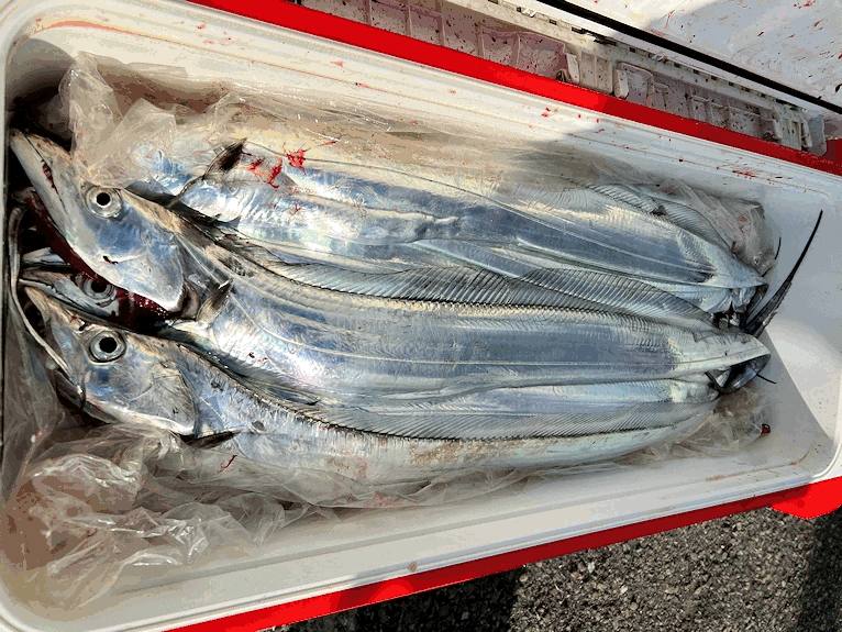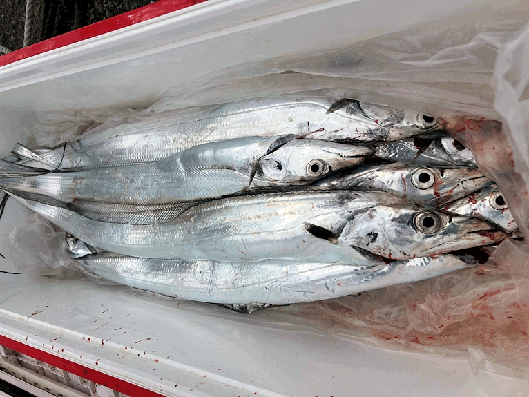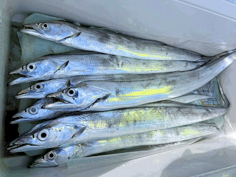 2025年3月22日 本日は太刀魚にて出船しました、前後半ポツポツ、後半ポッツポツサイズアップ ジギング 40本〜7本・4.0本指〜2.0本指・本鰆 3.0kg・サゴシ・マアジ混じる |