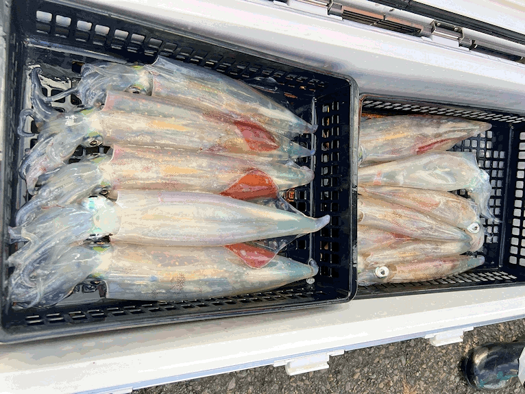 2025年8月30日 本日はリクエスト・スルメイカ(キンス)にて出船しました、反応のわりに乗り今一つでした。35杯〜5杯 |