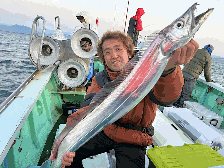 2025年2月16日 本日は太刀魚にて出船しました、雨予報で中止の予定でしたが、お客様が行きたいとのことで、潮少し動いてポツポツ、後半ドラゴン狙いでしたがF4止まり 餌釣り、ジギングともに当たりは終始ありました、餌釣り 9本・ジギング 10本〜5本・F4〜F2.5・少し2枚潮でタックル合わせれば数伸びそうです |