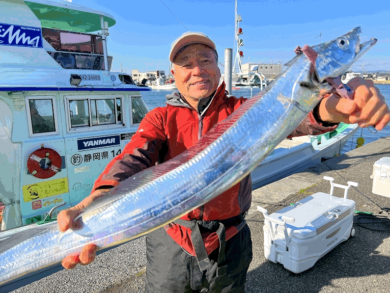 2025年11月22日 本日は太刀魚にて出船しました。前半ポッツポツ、明け方〜ポツポツ後半ポッツポツ・餌釣り 21本〜3本・ジギング 17本〜4本・スルメイカ混じるF4.5〜F3.0 餌釣りトップ 藤枝市 佐藤様・ジギングトップ 静岡市 佐野様 |