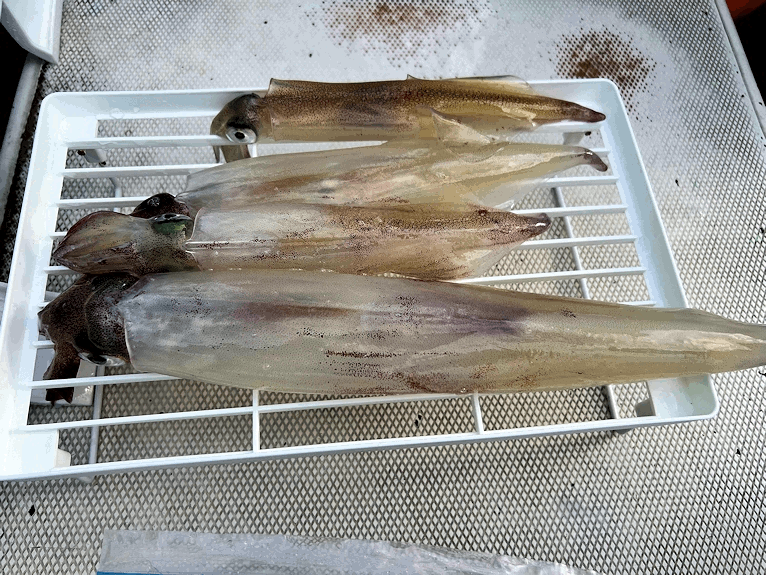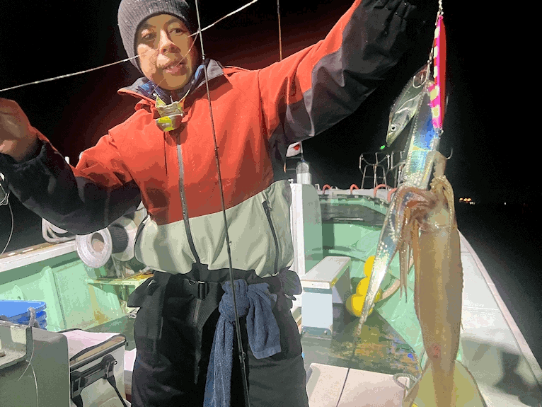 2026年1月10日 本日は石花海ヤリイカにて出船しました、様子悪く最高3杯乗った流しもありましたが、ほぼ拾い釣り ヤリイカ 4杯〜1杯(スルメイカ混じる) |