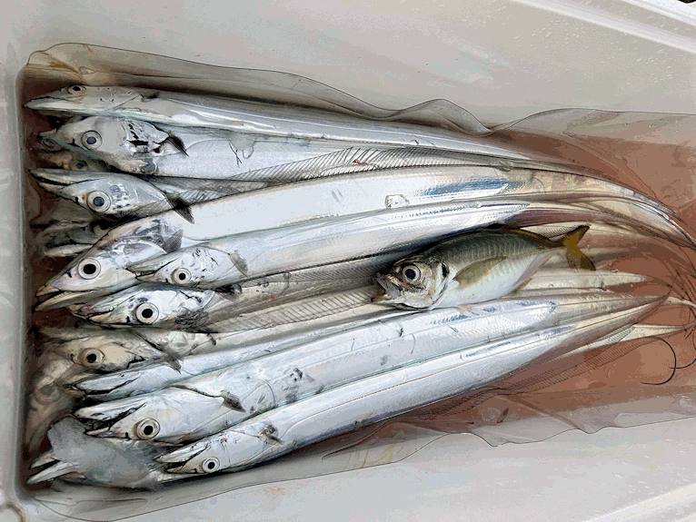 2026年1月5日 本日は太刀魚にて出船しました、前半かたはみれましたがポッツポツ後半日出後食い出すもすぐに 食わなくなりました。 ジギング 7本〜2本・F3.0〜F2.5・ジギングトップ 焼津市 近藤様 |