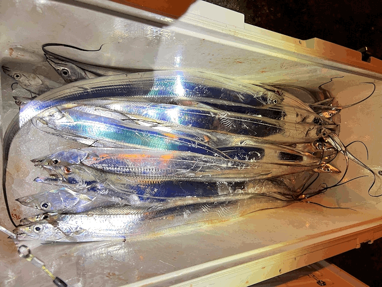 2026年1月4日 本日は太刀魚にて出船しました、ポイントに着きすぐに食いました〜沈黙 月が落ちてから 食い食い 餌釣り 28本〜15本・ジギング 24本〜15本・テンヤ 9本・F3.5〜F2.5・ 餌釣りトップ 静岡市 是永様・ジギングトップ 浜松市 中込様 |