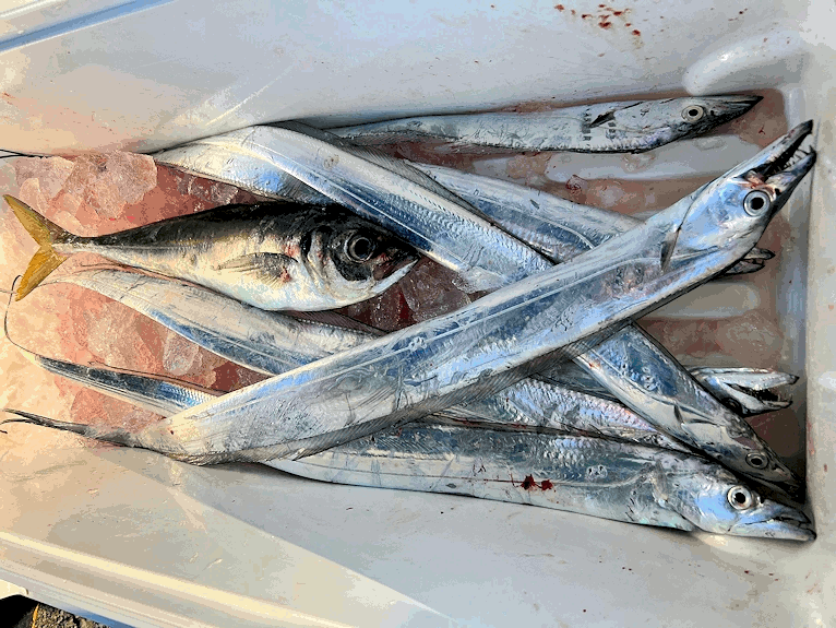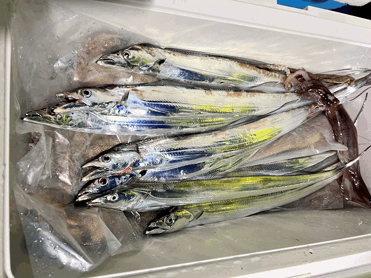 2026年元旦 明けましておめでとうございます 今年も宜しくお願いします。 本日は太刀魚にて出船しましたが、本命ポイントに行けずほぼ五目釣り イヤゴハタ・サゴシ・白アマダイ・スルメイカ・メイゴ・太刀魚 4本〜0本 |