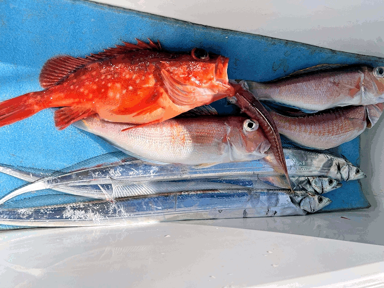 2026年2月1日 本日は太刀にて出船しました。ジギング乗り合い潮無く当たりのみ、日出後30分底物狙いでカサゴでした。寒い中ありがとうございました。 |