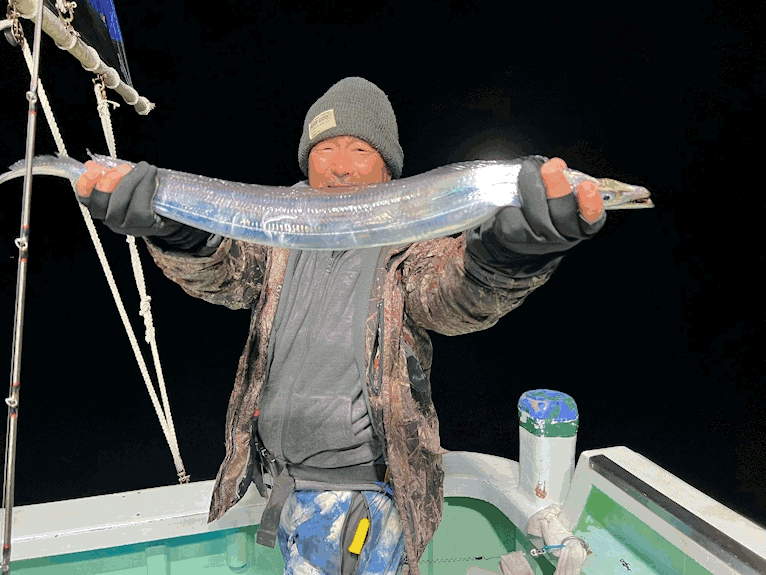 2026年1月19日 本日は太刀魚にて出船しました、前後半ポツポツ ジギング 80本・70本・55本・48本・40本・35本・前半サイズ良かった 船長の指でF3.5〜F2.5・2本指混じる 初めてのご夫婦で奥様70本・旦那さま35本・トップ80本は後半寝てました |
