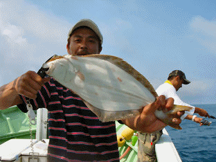 2012年 7月 28日 本日は、太刀魚・底物にて出船しました。太刀魚 餌1人 33本 4本指〜3本指 ルアー 37本〜10本 4本指〜3本指 後半ルアー入れ食いでした。(棚 80m)底物はヒラメ 2.0kg・カサゴ・アヤメカサゴ・鬼カサゴ1.0kgと食いました。 |