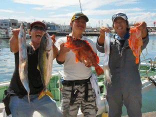 2012年 5月 20日 本日は底物にて出船しました。ワラサ 6.0kg・カンコ 2.5kg〜1.0kg・アヤメカサゴ・キツネダイ・大鯖入れ食い! |