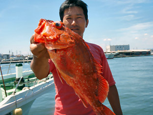 2012年 5月 6日 本日は、底物にて出船しました。マハタ 2.0kg・ヒラメ 1.5kg〜1.2kg・カンコ 1.8kg〜1.0kg・あやめカサゴ・その他 カサゴはほとんどの方が2桁でした。船中83匹・朝一大物(カンパチかモロコかハタ)のラインブレーク 3回ありました。 |
