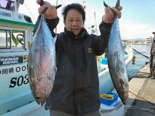 2012年 1月 4日 本日は焼津沖が風強く、焼津前にての釣行となりました。 トップ 20本 5本指〜3本指・強風と寒さの中お疲れ様でした。 |