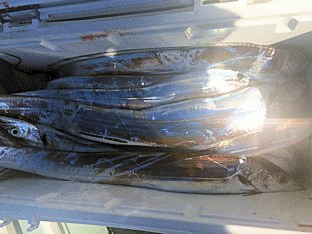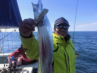2016年 6月 4日 本日は太刀魚にて出船しました。 5本指〜3本指 25本〜7本 暗い内から入れ食いの方もいました、1日上手に釣れば 30本以上抜けそうです、ソーダ鰹、鯖混じる、帰りに鳥山にて平鯖1.0kg〜0.6kg、ゴマサバ入れ食いでした、シイラ混じる。 本日のトップ 焼津市 鈴木様・最大魚 東京都 大木島様でした。 |