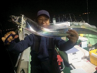 2016年 11月 23日 本日は太刀魚にて出船しました、餌釣り37本 ルアー25本 4.5本指〜3本指 ルアー 清水市 土岐様 餌釣り 静岡市 滝波様 船長も少しジギングして10本釣りました。 |